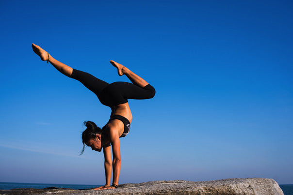 - Once you’ve found your balance, slowly inhale and extend your arms over your shoulders.